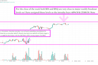 For the close of the week both $ES and $NQ are very close to major weekly breakout levels so I have assigned those levels as the intraday keys: 6894.50…
