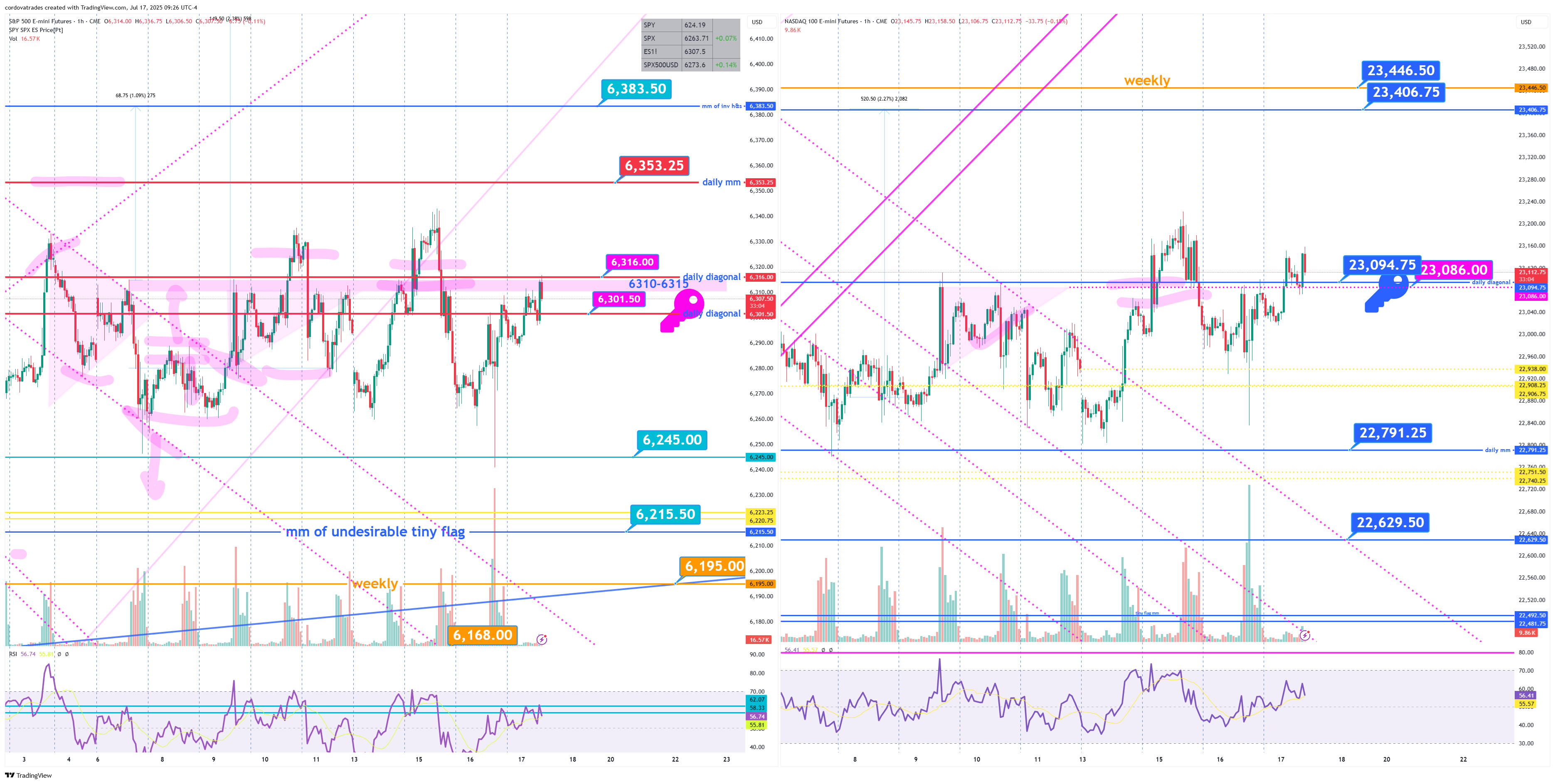 Indices still in the 'chop slop zone' after a touch of the bottom yesterday and impressive bounce. Today watch $ES 6301.50 as key. $NQ 23094.75. $GC 4hr channel support 3319.8, but needs v important 3323.1 hourly regained as well. $SI still looks flaggy 4hr. Breakout >38.445. $CL ok > 66.22 hourly