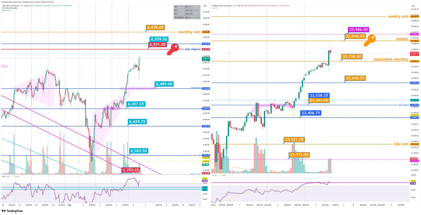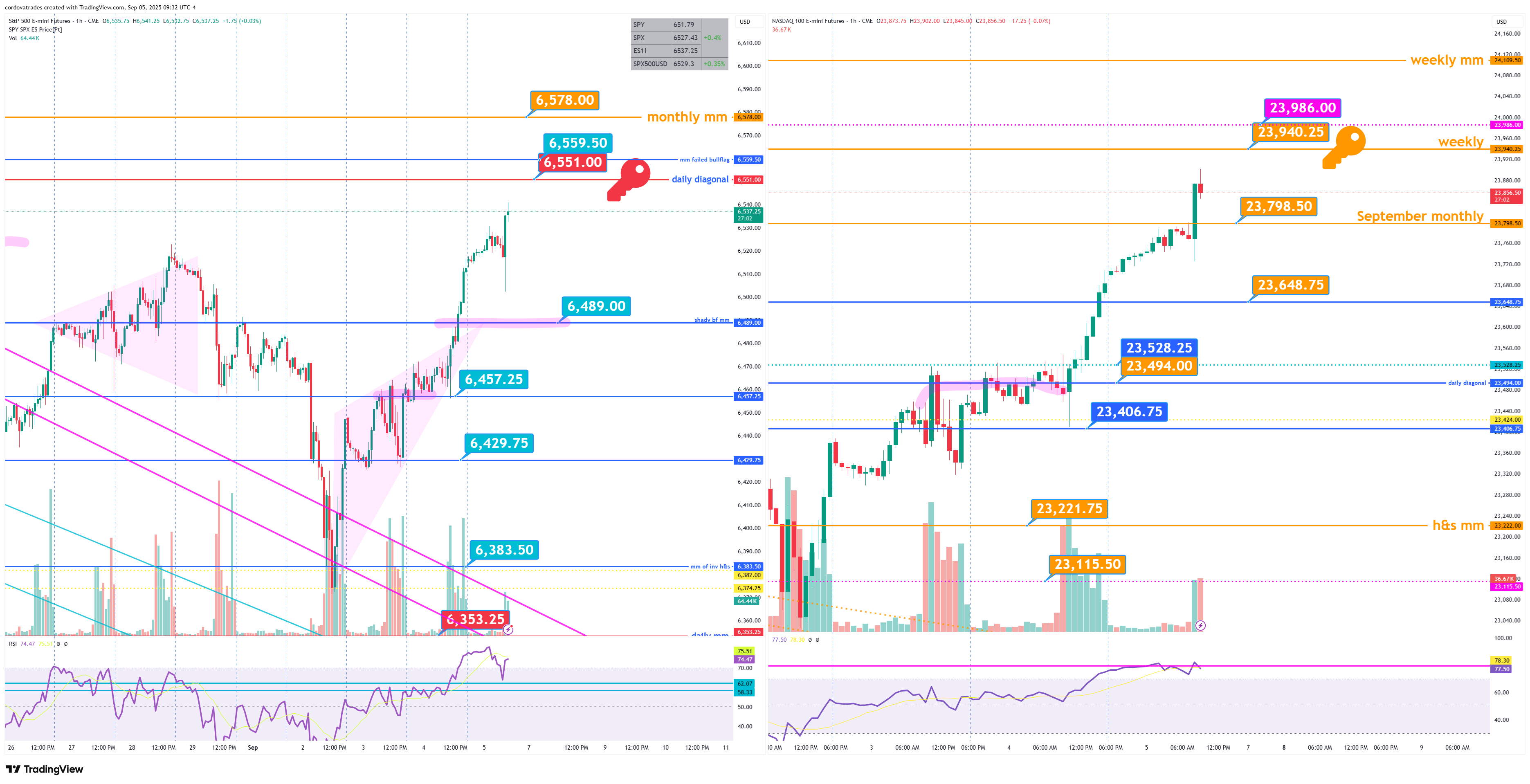 Fantabulous Friday PlanJulia Cordova✨Sep 05, 2025∙ Paid1ShareIndices pop on data. Watch $ES 6551 (daily) as the key today. $NQ 23940.25. $GC on an ATH roll, but $SI lagging. $GC good > 3598.9. $SI breakout > 42.035(4hr). $XOP backtesting breakout at 129.82 once again.This post is for paid subscribersSubscribeAlready a paid subscriber? Sign in