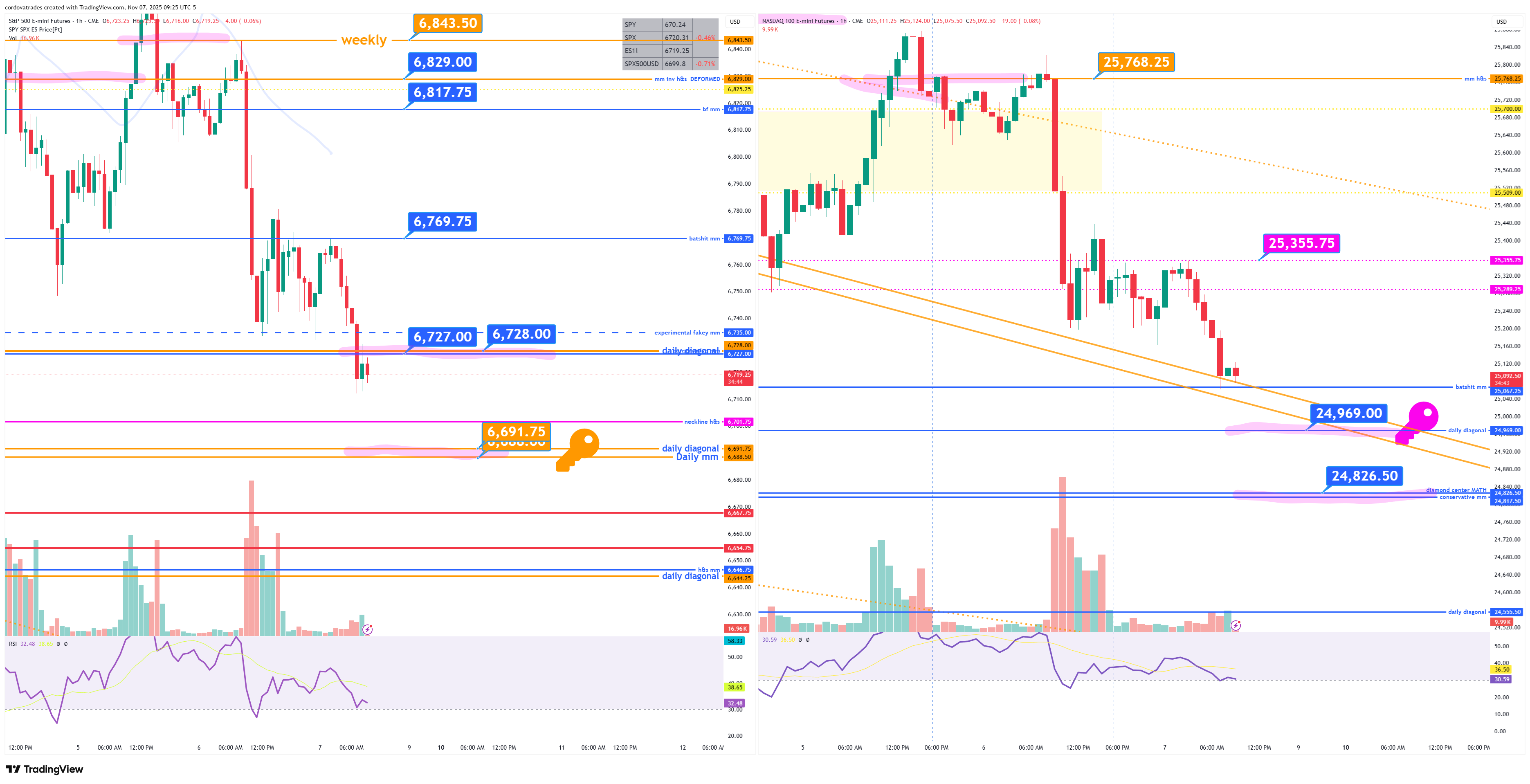 After closing near lows we see a gap down for indices. I have assigned 6688.50-6691.75 (daily) as the key for today. An hourly close over 6727-8 could see more upside out of the gate. $NQ 24969.00. I see a squinty inv h&s on the $GC 4hr. Neckline 4027ish. $CL daily bounced where it needed to still looks mini bullflag/inv h&s on daily neckline 62.59