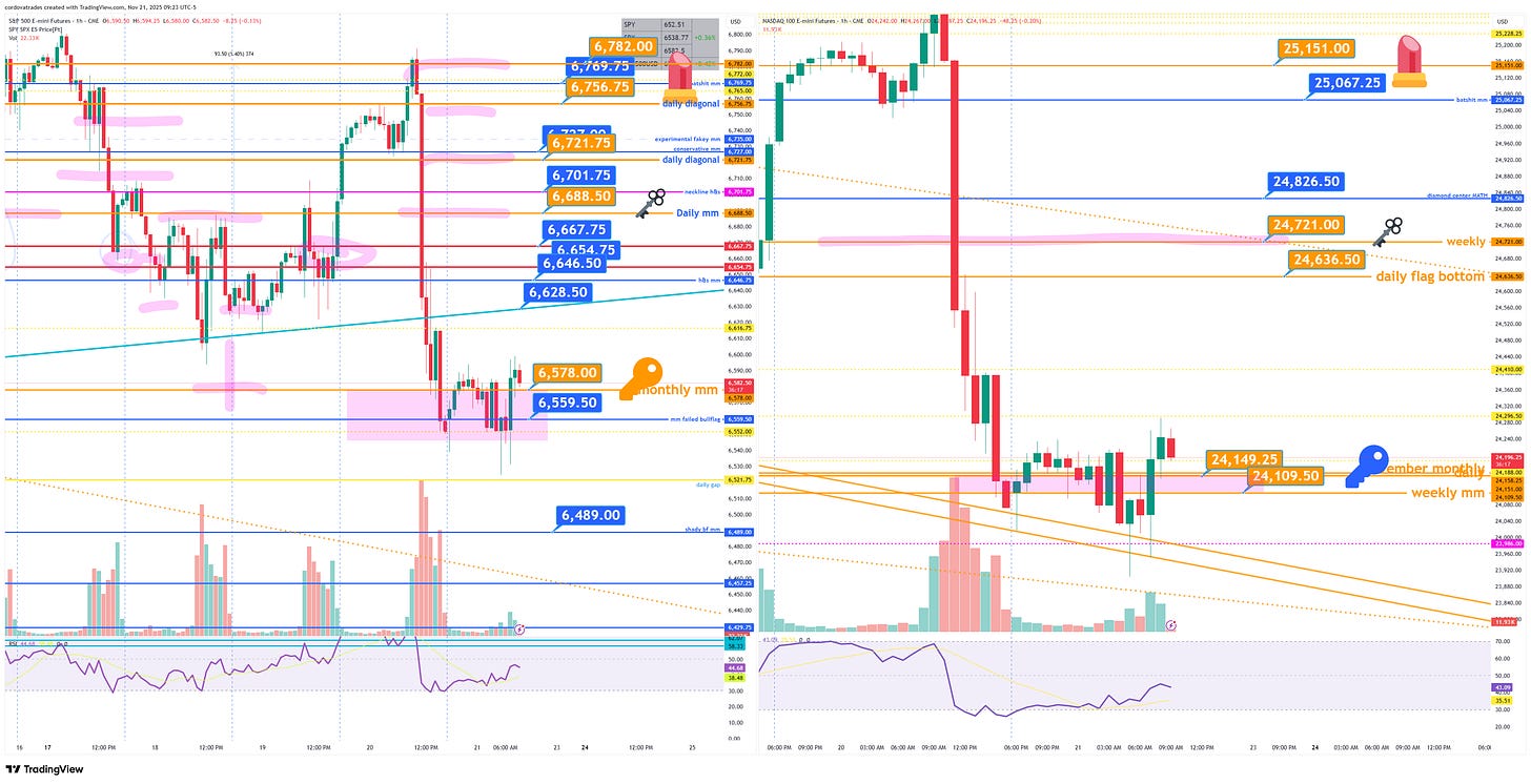 $ES is currently holding the overall weekly key of 6578.00 and that is key for today. If lost, look for a daily gap fill at 6521.75. a dip below and recovery would be a long. $NQ watch 419.50-24149.25. $GC channeling 4hr R 4079.9 S 4056.1. $CL watch 58.83 R and small gap 57.24-34