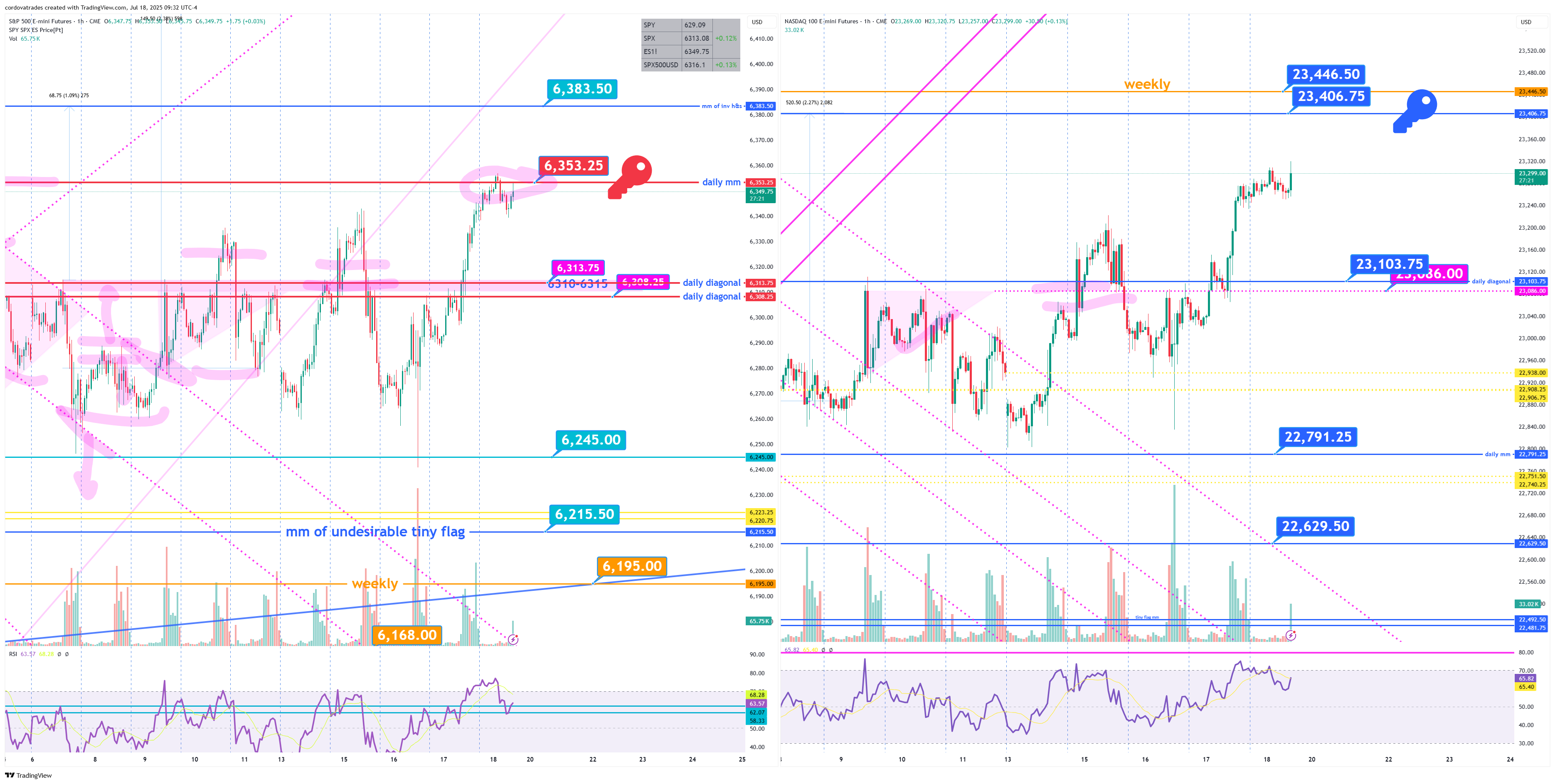 Indices flagged overnight and now $ES has finally gotten to the daily measured move of 6353.25 (key for today). I lean bearish in this area unless we start confirming hourly above. Watch $GC 3369.9 R (hourly), $SI 38.545 S (4hour). $CL 66.65 S (4hr)