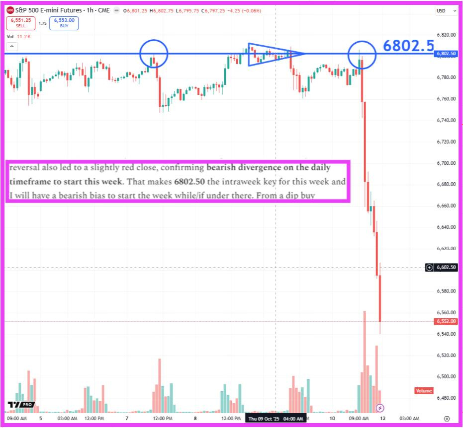 I was reasonably confident that $ES/SPX futures would reach my daily level of 6629✅, where I thought it had a high probability of bouncing, but unfortunately, that trade didn’t work.