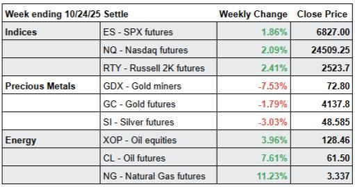 · The indices rallied in the first part of the week, dipping to lows on Wednesday and rallying again into the close on Friday. $RTY/small caps showed relative strength after falling behind over the last few weeks.
