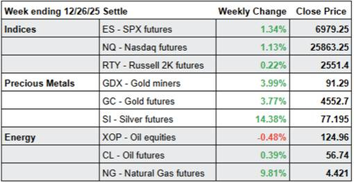 · $CL/Crude Oil futures closed slightly higher, while $XOP/oil equities was the underperformer for the week settling slightly lower.