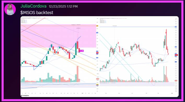 From an equity perspective, I added to my $MSOS position last week on a backtest of the flag breakout at 4.30 (low of week was 4.29🎯). It bounced strongly afterwards and closed the week at 4.81.💰