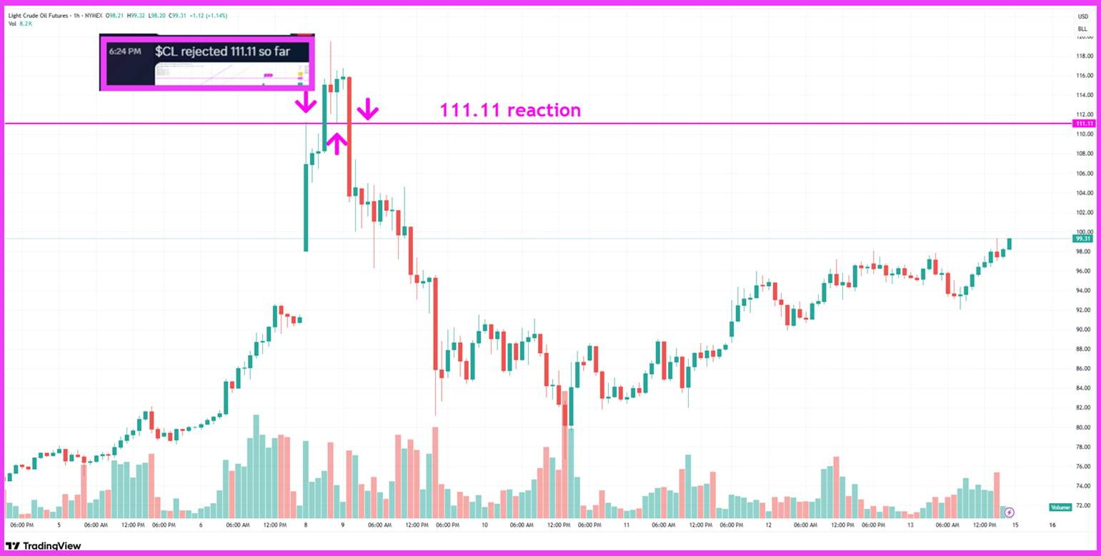 My crude and $XOP/oil equities levels performed well. I was watching 111.11 as major resistance. After an initial rejection we saw price surge higher, but once it got back below, it was a fantastic drop into support before bouncing. ✅