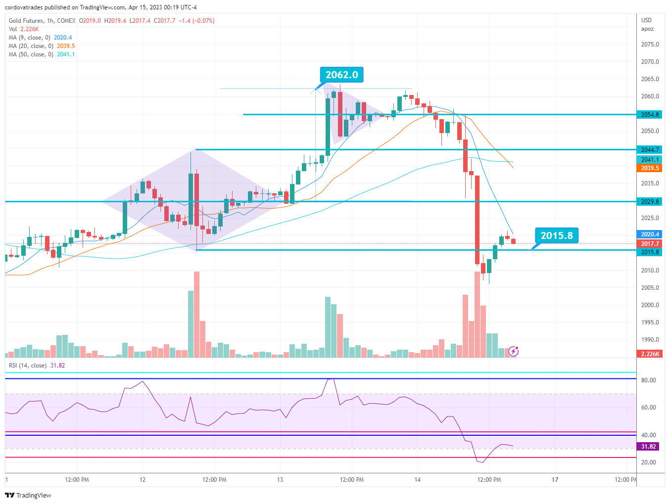 Because both miners and precious metals were still hovering around major resistance, I scalped gold short a couple of times, the last of which was at 2062 shared in the Discord from the 1hr chart Thursday. I took some profit at 2015💰 on Friday: