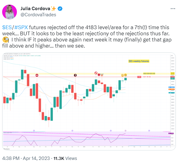 Last week I remained mildly bullish once again for what I suspected would include another attempt at my 4183 “BUY OR DIE” $ES/SPX futures level.✅ On Friday I shared my thoughts publicly on what I believe will happen on yet another (8th!?) attempt this week: