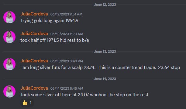 Despite the underperformance for $GDX/gold miners over the previous week, I was low confidence bullish on the precious metals sector once again and bought the dips all week, sharing a couple of my trades on the Discord💰💰: