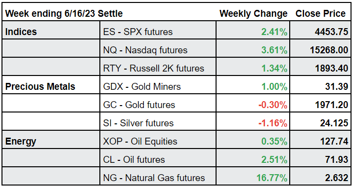 $NQ/Nasdaq futures led the charge with strong performance all week into Friday and $ES/SPX futures followed a similar path. $RTY/small caps futures started out strong, but chopped in the latter part of the week, although part of that could be attributed to a lagging contract roll, which the other 2 completed in the prior week.