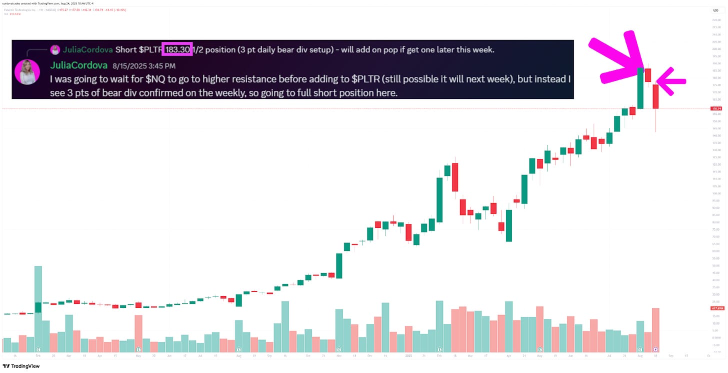 I have continued to swing overbought tech stocks short and as I mentioned last week in the front part of this note, I added a $PLTR short when the setup triggered. 💰 I took partial profit last week after a wonderful decline.