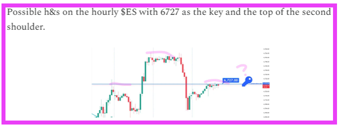 The next great day-trade setup was from the top of the second of a h&s formation on the hourly the next day. We caught the top of the second shoulder with ease: