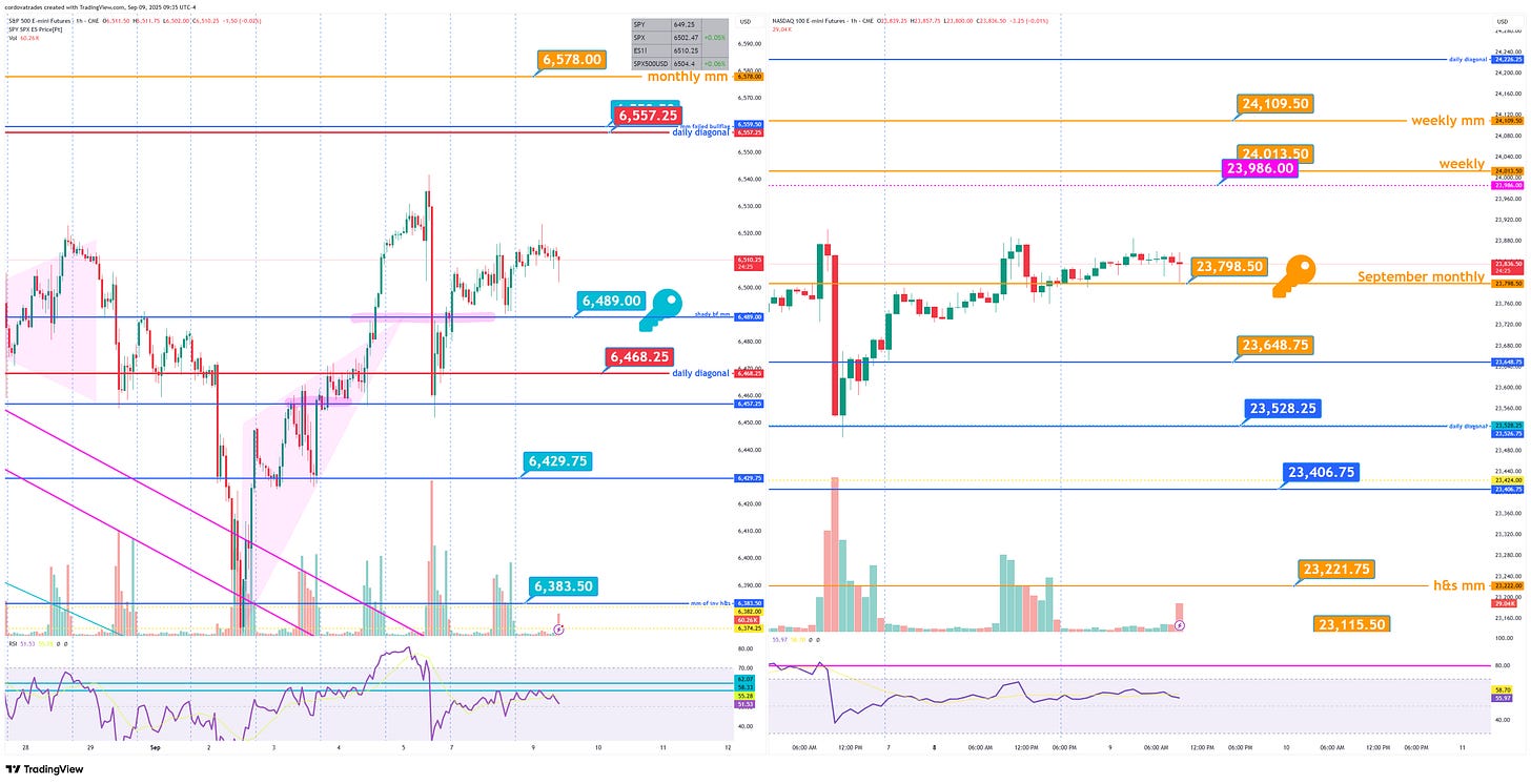 Still wedge filling inside of the $ES daily chart. Today watch 6489 once again as the key. > 6557.25 would be a breakout. <6468.25 would be a breakdown. $NQ watch 23798.50 (again). $GC broken out over 3685.8. $SI breakout over 42.245 (4hr). $XOP lost the breakout yesterday, but regained > 129.82.